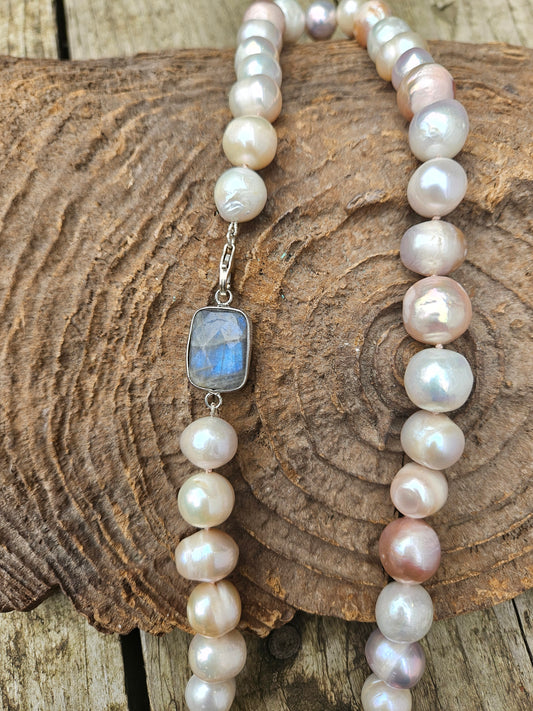 2 Row Amethyst, Pearl, Ceramic and Labradorite Necklace