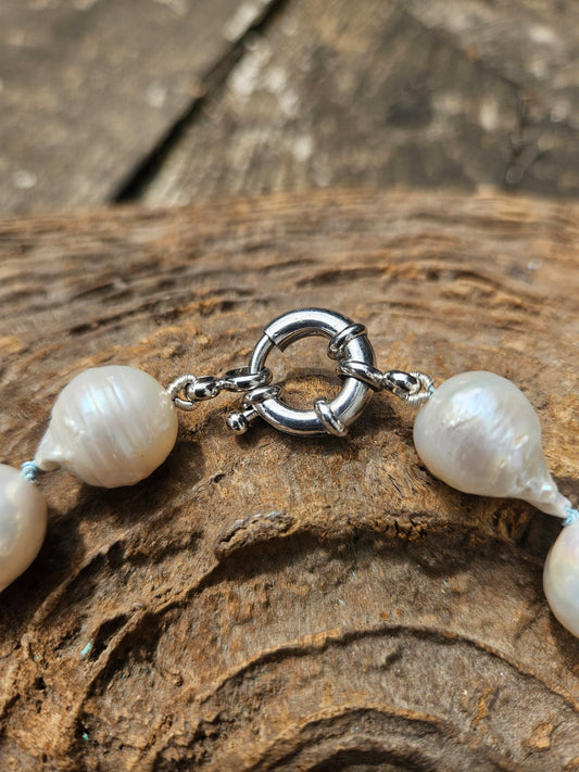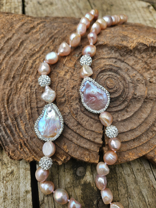 Statement Pink Freshwater Pearl and Carnelian Clasp Necklace