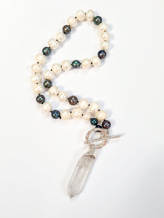 Freshwater Pearl and Quartz Point Necklace