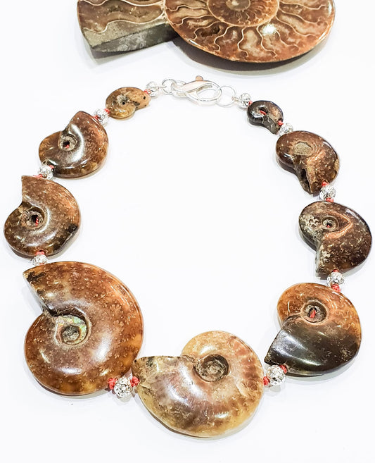 Fossil Ammonite and Electroplated Lava Necklace