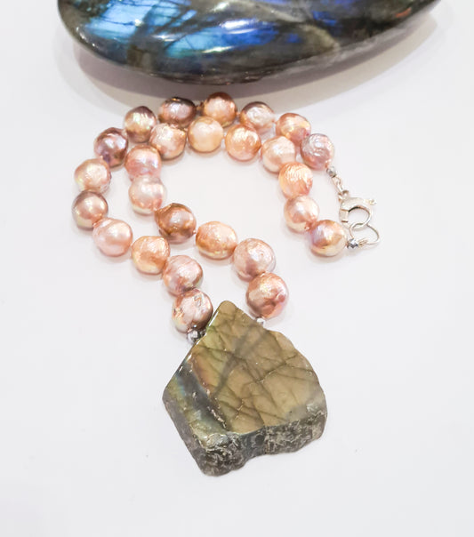 Golden Pink Pearl and Labradorite Necklace