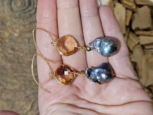 Baroque Pearl and Coin Pearl Earrings