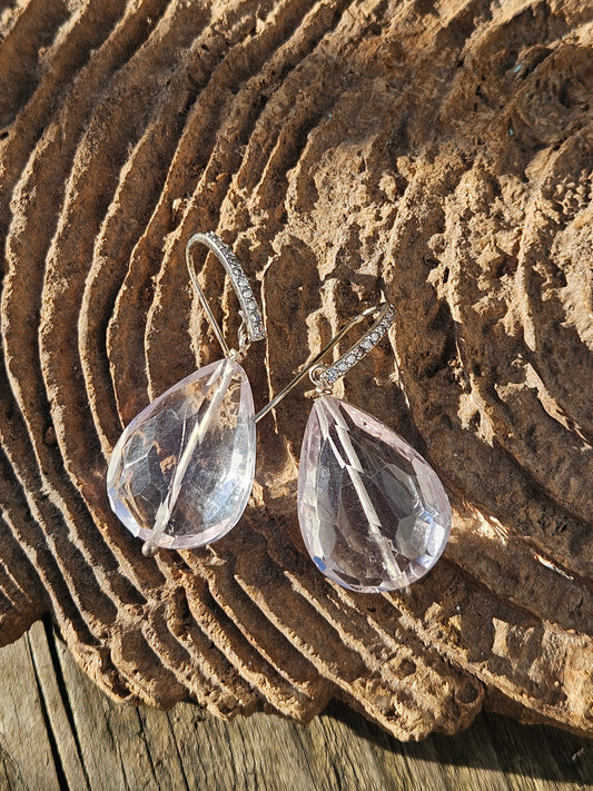 Amethyst Teardrops and Sparkly Silver Hook Earrings