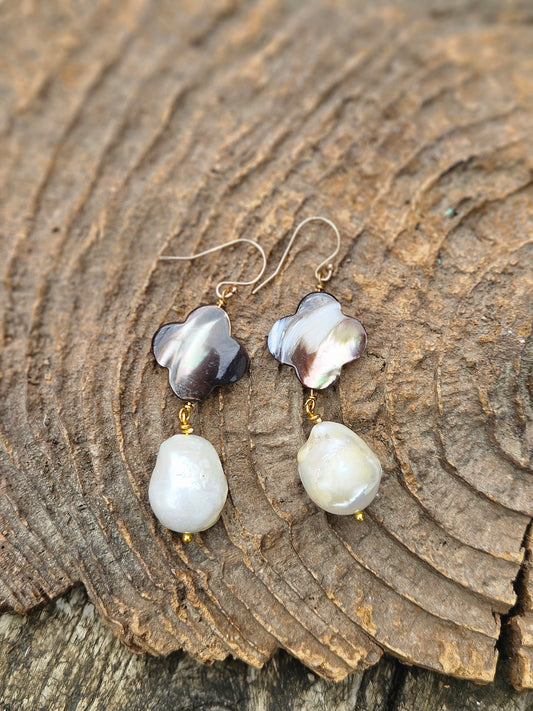 Mother of Pearl Clover Leaf and Freshwater Pearl Earrings