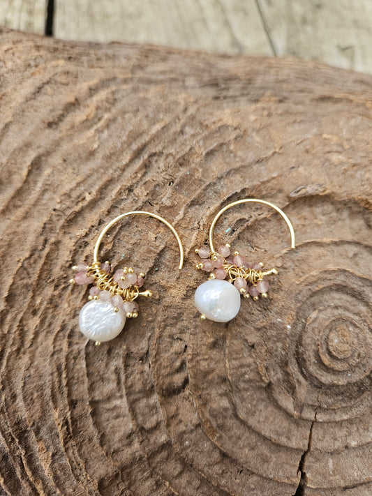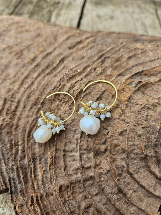 Quartz and Pearl Hoop Earrings