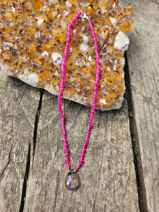 Watermelon Tourmaline and Smoky Quartz Necklace
