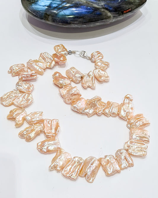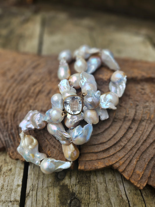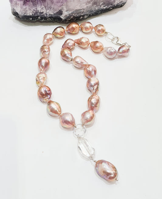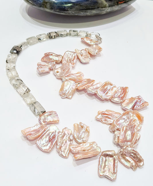 Irregular Pink Pearl and Rutilated Quartz Necklace
