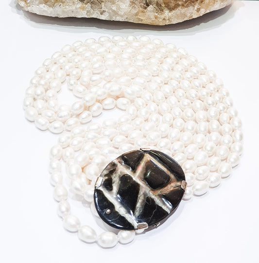Multi Row Pearl and Statement Clasp One Off Necklace