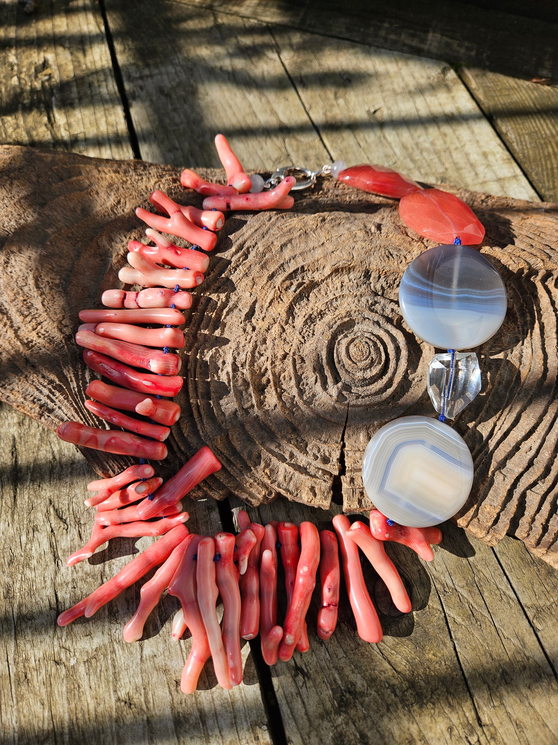 Coral, Agate and Quartz Necklace