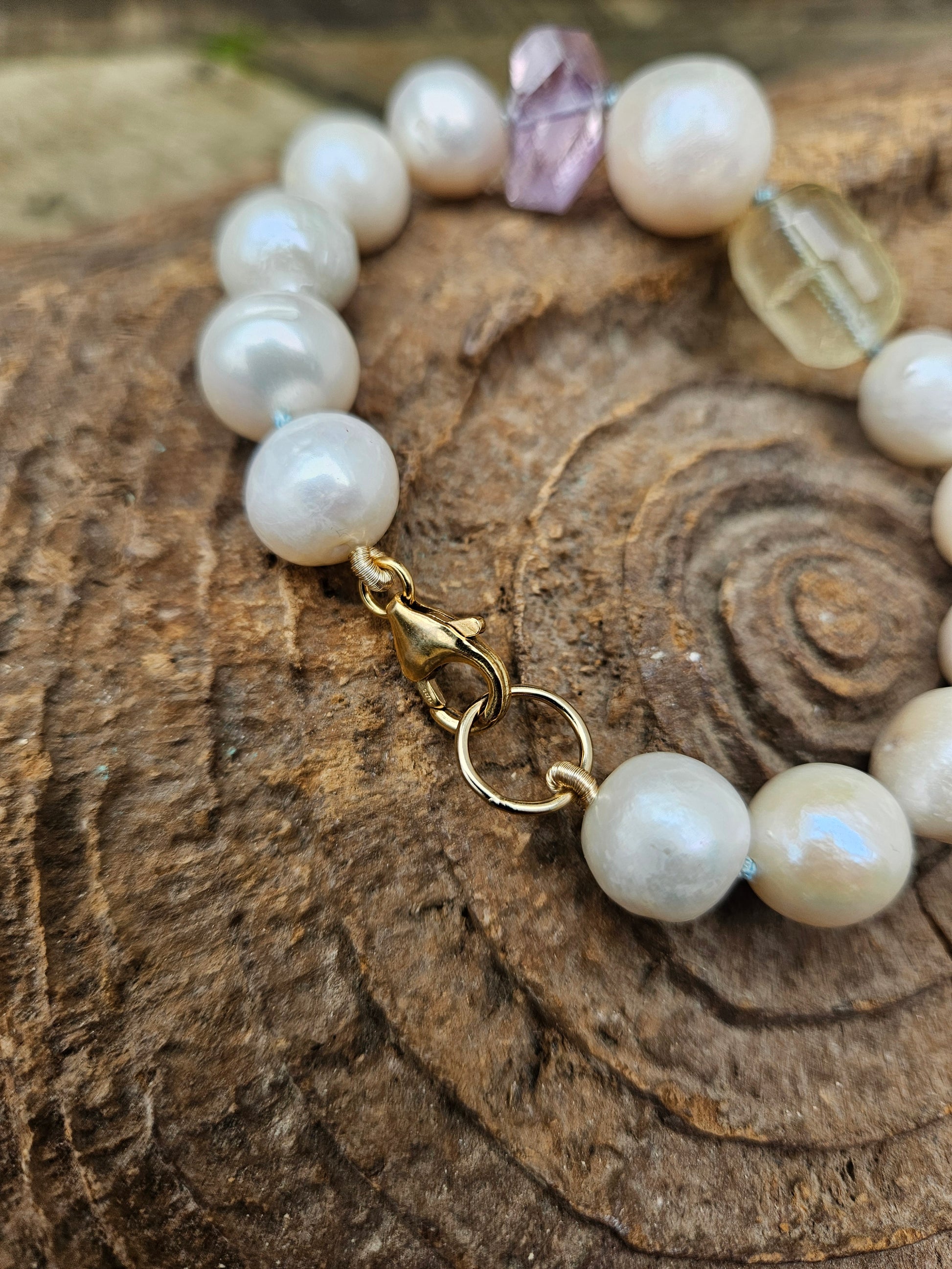 Pearl, Amethyst and Lemon Quartz Bracelet