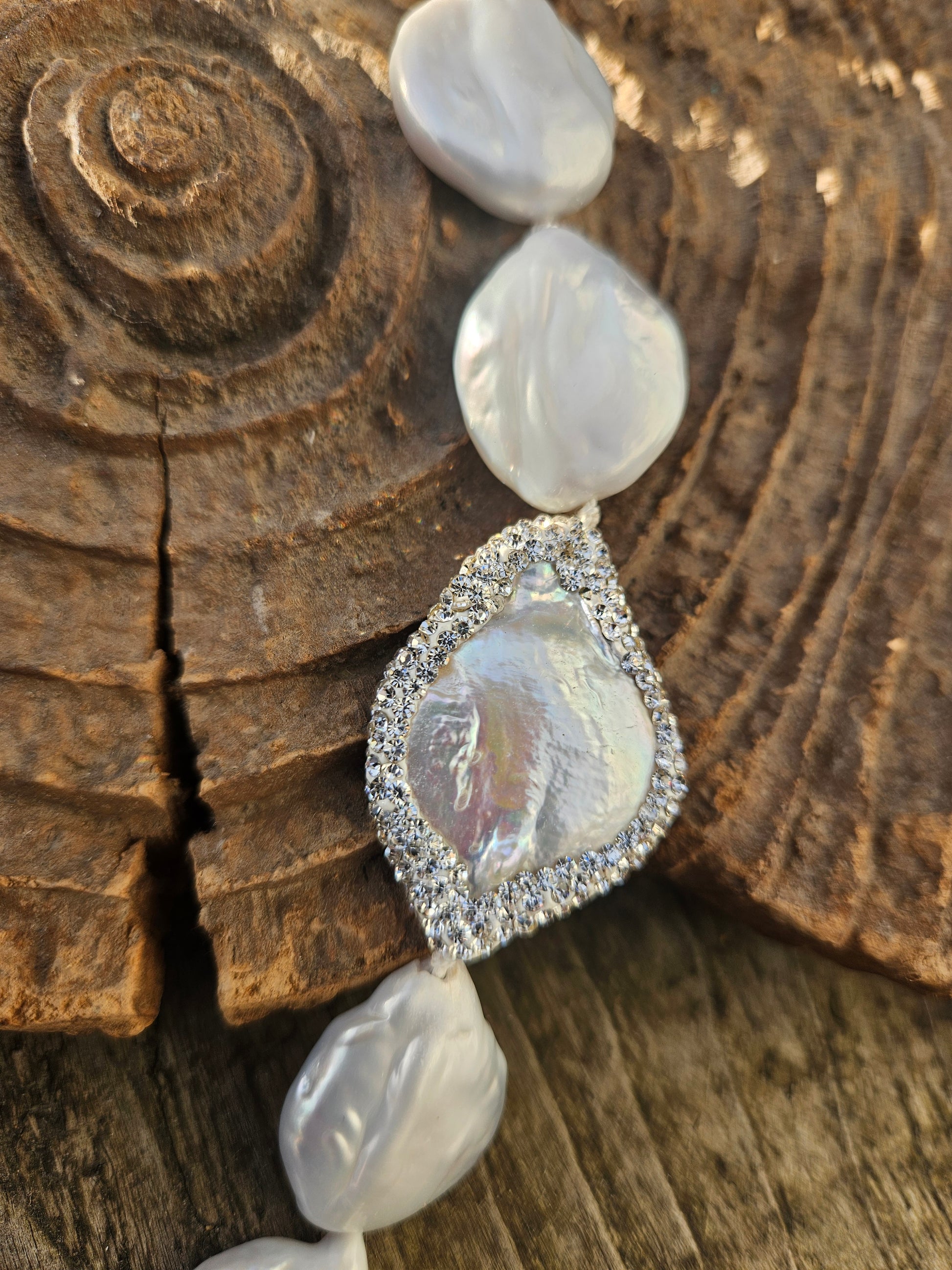 Silver coloured freshwater coin pearls, knotted on silk and finished on a 925 silver clasp.