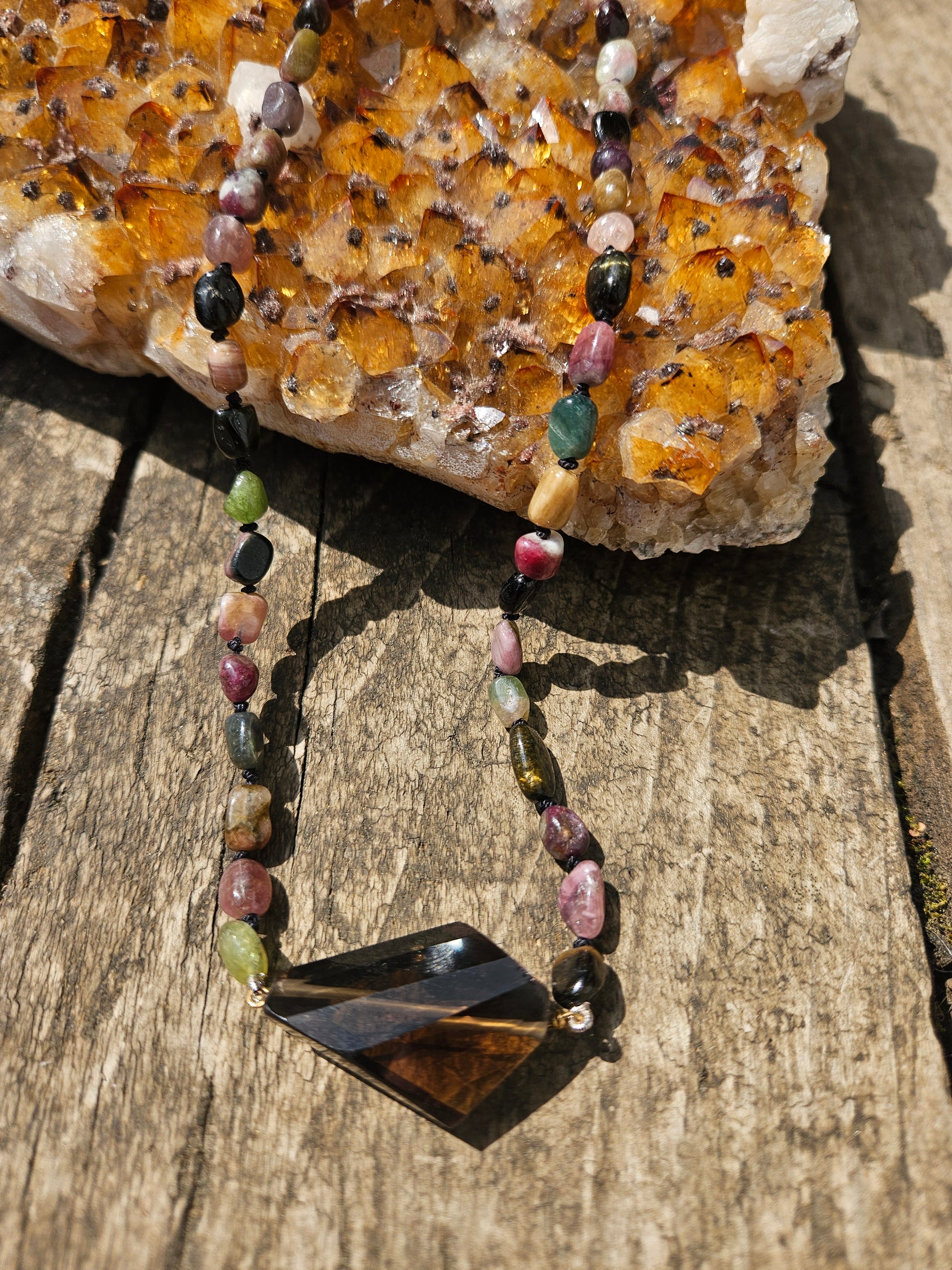 Watermelon Tourmaline and Smoky Quartz Necklace
